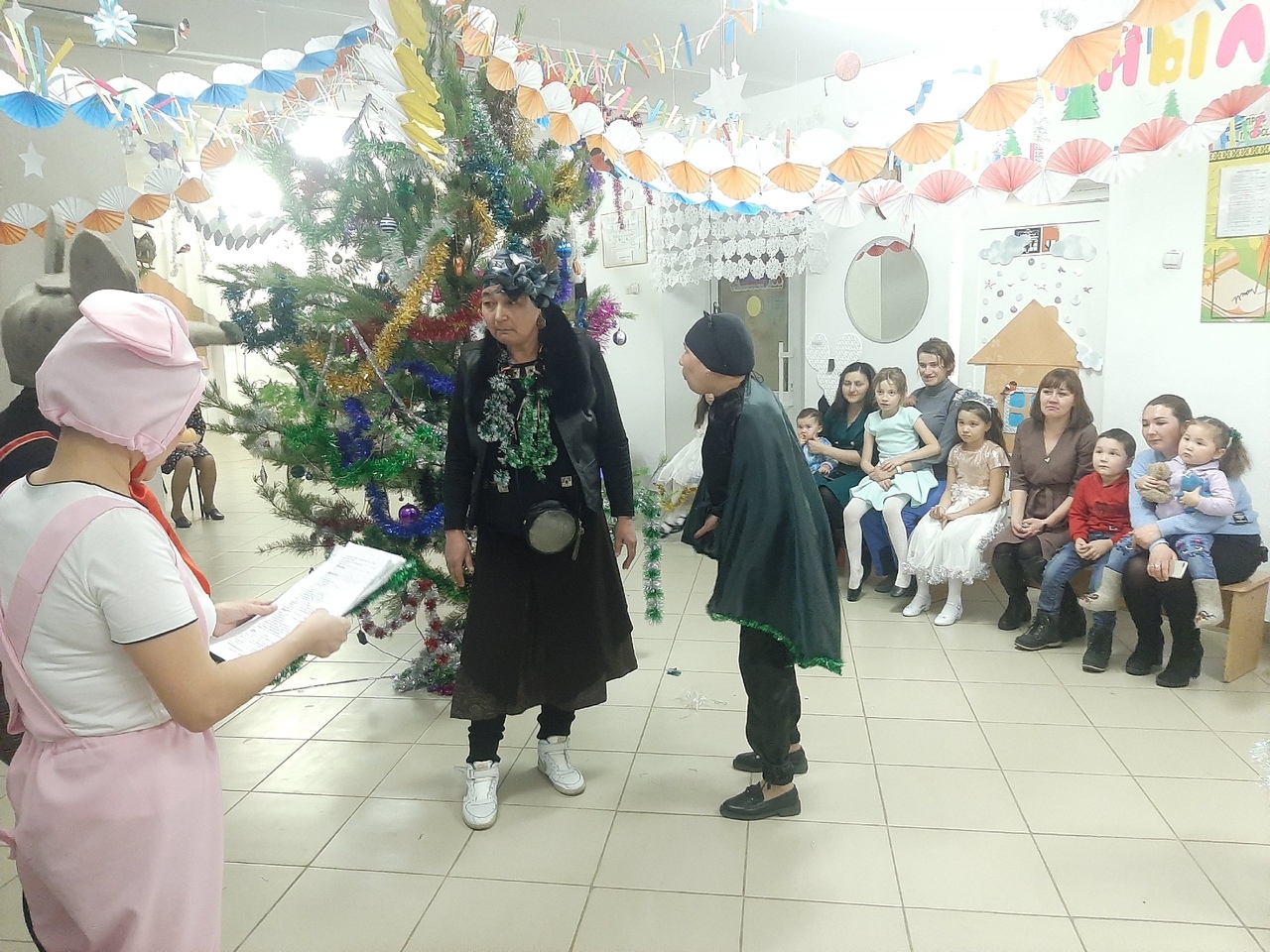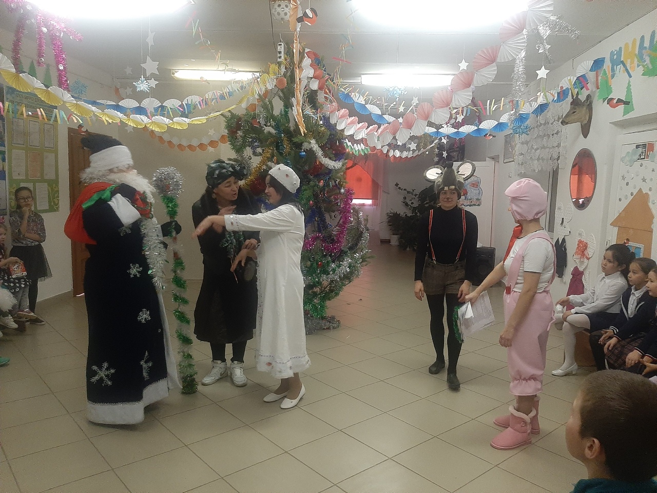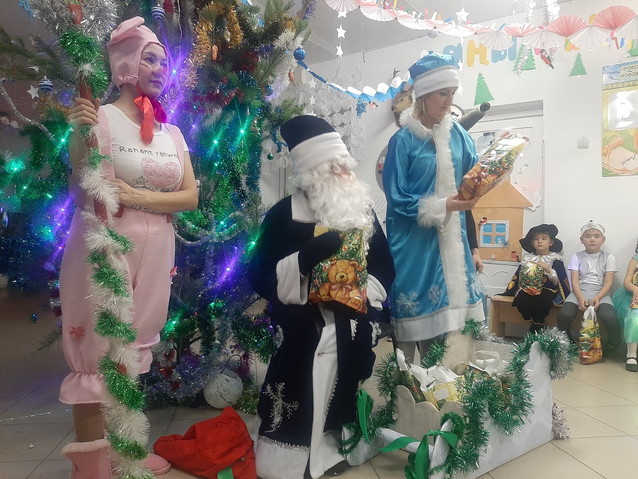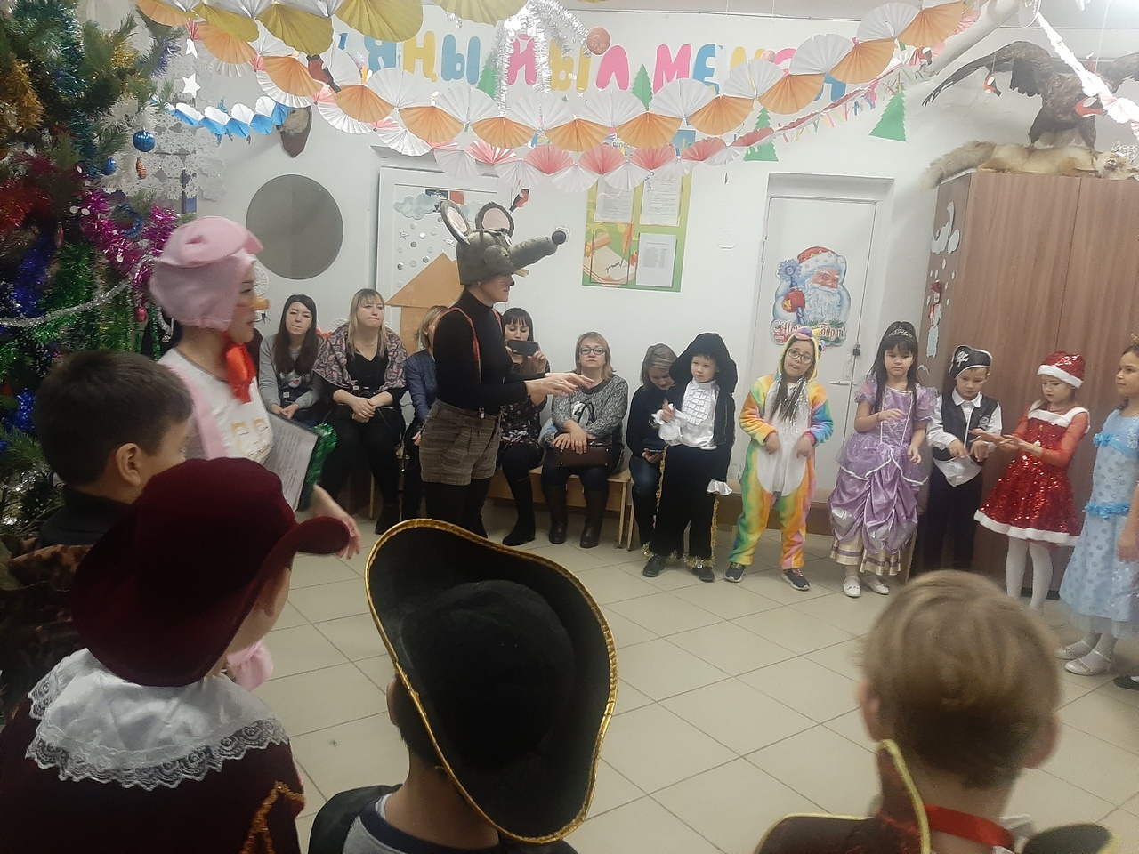 Сюрпризы, подготовленные Вредьмой и летучей мышью Клавой, обеспечили всем многообразие ярких впечатлений на долгое время. Новогодние персонажи - Мышонгок Пик и Поросенок Хрю, порадовали всех играми и веселыми шутками.